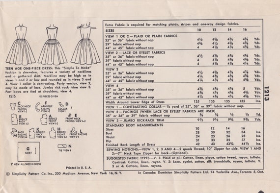 Simplicity 1213 Vintage 1950s Sewing Pattern Dress Size Etsy